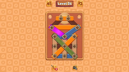 Schrauben und Muttern anziehen ist ein aufregendes Casual-Puzzlespiel, in dem Sie in die beruhigende Welt der Holzbearbeitung eintauchen können. Als Spieler werden Sie in die ruhigen Geräusche des Holzsägens und -schraubens hineingezogen, begleitet von einem beruhigenden Soundtrack, der das meditative Erlebnis vertieft. Dieses Spiel ist perfekt für diejenigen, die eine entspannende und dennoch ansprechende Möglichkeit suchen, ihre Fähigkeiten zur Problemlösung zu verbessern. Spielen Sie kostenlos online, ohne dass eine Registrierung erforderlich ist, und genießen Sie ein browserbasiertes Erlebnis ohne Downloads. Fordern Sie Ihre Logik und Aufmerksamkeit heraus, während Sie durch diese gestaltete Welt navigieren, die auf Desktop-, Android- und iOS-Plattformen verfügbar ist.