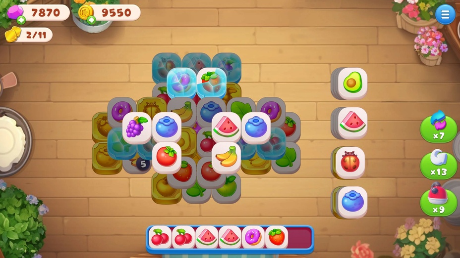 Beginnen Sie mit der Auswahl eines Levels aus dem Spielmenü. Das Ziel ist es, drei identische Steine zu finden, um sie vom Brett zu entfernen. Tippen Sie auf Kacheln, um sie auszuwählen, und sie werden in Ihr Kachelregal verschoben. Sobald Sie drei passende Kacheln haben, verschwinden diese. Räume die Kacheln weiter ab, bis du das Level abgeschlossen hast.