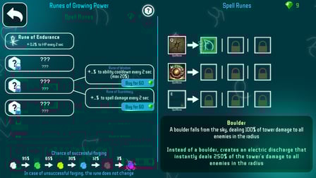 Konzentriere dich darauf, deine Türme zu verbessern und Runen strategisch einzusetzen, um deine Zauber für maximale Wirkung gegen die Wellen der Feinde zu verbessern.