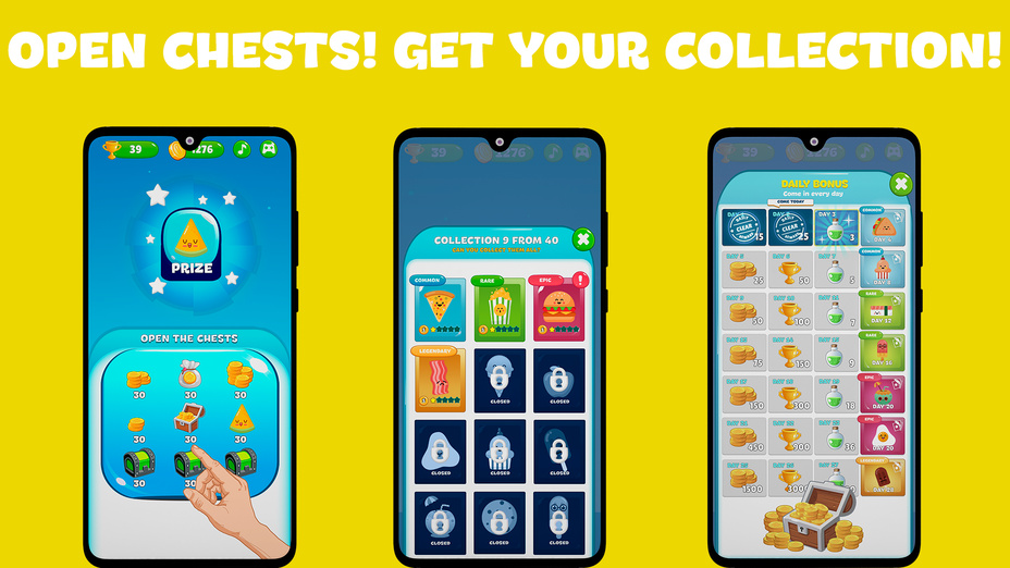 - Öffne Truhen, um lustige Charaktere zu sammeln, die dich motivieren und unterstützen können.