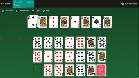 Wie spiele ich zwanzig Solitaire kostenlos?