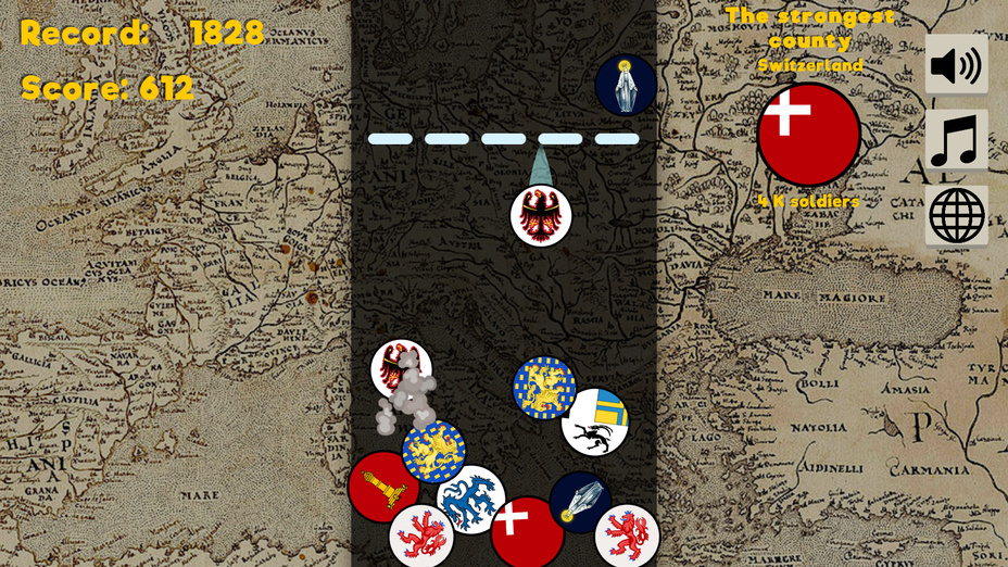 Mit seiner lebendige Grafiken und progressiver Schwierigkeitsgrad, Vereinigt die Grafschaften des Heiligen Römischen Reiches! zeigt eine Reihe historischer Zustände, die jeweils durch bunte Symbole dargestellt werden. Die süchtig machende Natur des Zusammenführens und Sammelns fügt dem Gameplay eine bezaubernde Ebene hinzu und verleitet die Spieler dazu, ihre Fähigkeiten zu verbessern, während sie auf den Bestenlisten antreten!