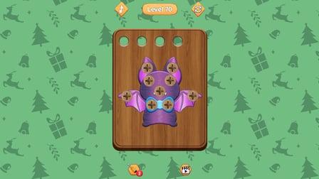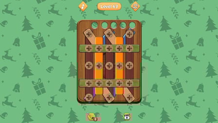 Die Spieler navigieren über eine einfache Benutzeroberfläche durch das Spiel, die eine einfache Handhabung von Holzschrauben und -muttern ermöglicht. Die primären Steuerelemente umfassen das Tippen oder Klicken auf den Bildschirm, um die Schrauben zu drehen und die Muttern zu lösen. Das intuitive Design sorgt dafür, dass Spieler jeden Alters das Spiel ohne steile Lernkurve genießen können. Im weiteren Verlauf bleiben die Steuerelemente konsistent, sodass Sie sich auf das Lösen jedes Rätsels konzentrieren können, anstatt komplizierte Mechaniken zu beherrschen.
