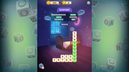 Begeben Sie sich auf Ihre Reise, indem Sie Buchstaben im Raster auswählen, um aussagekräftige Wörter zu bilden. Ziehen Sie Ihren Finger oder Cursor über benachbarte Buchstaben, um Wörter zu erstellen, versteckte Geschichten aufzudecken und Sterne zu verdienen. Während du Sterne sammelst, schaltest du Einrichtungsgegenstände frei, die dem Zuhause der Familie Leben einhauchen und die Handlung vorantreiben.