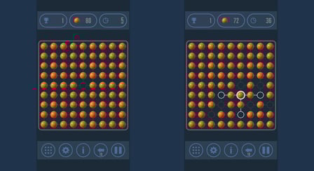 Steuere das Spiel mit den Pfeiltasten auf der Tastatur, um die Bälle zu bewegen: nach links, rechts, oben und unten. Auf dem Handy wird die Steuerung durch Antippen und Wischen vereinfacht. Überlege dir jeden Zug gut, während du versuchst, die Bälle effektiv zu kombinieren.