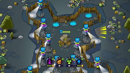 Beginne damit, deinen Turm aus der Benutzeroberfläche auszuwählen. Baue Türme mit deinen verfügbaren Ressourcen an strategisch günstigen Positionen, um Zombie-Angriffe abzuwehren. Kombiniere Türme des gleichen Levels, um verheerende Feuerkraft zu entfesseln. Rekrutiere Arbeiter, die dir beim Transport von Nachschub und der Reparatur deiner Verteidigung helfen — jede Sekunde zählt!