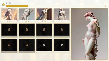 En 99% Do Not Assemble - Antique Sculptures, sumérgete en un mundo de caos elegante. Cada rompecabezas está lleno de detalles intrincados que desafían tu intelecto y tus sentidos artísticos. Los visuales son un deleite, mostrando obras de arte exquisitas que cautivan e inspiran creatividad. Esto es más que un juego; es una invitación a apreciar el arte mientras mejoras tus habilidades cognitivas.