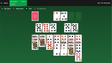 El solitario Agnes combina la comodidad familiar del solitario Klondike con un toque intrigante. El objetivo del juego sigue siendo el mismo: mover todas las cartas a las Bases. Sin embargo, la fila adicional de seis cartas agrega un elemento estratégico emocionante, lo que hace que cada juego sea una experiencia fresca y atractiva. Con sus reglas simples y su juego desafiante, Agnes Solitaire es perfecto tanto para jugadores casuales como para aficionados al solitario.