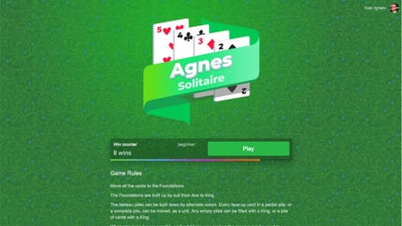 Puedes jugar al Solitario Agnes gratis en Playgama. Echa un vistazo a nuestra gran selección de juegos en línea gratuitos, incluido Agnes Solitaire y muchos otros títulos geniales.