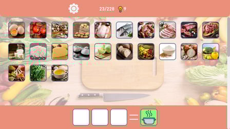 Alquimia: Fusionar recetas es intuitivo y sencillo de jugar. A medida que comiences tu viaje culinario, combinarás diferentes alimentos para desbloquear nuevas recetas. Sigue experimentando y probando diferentes combinaciones para descubrir todas las delicias que ofrece el juego.