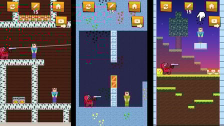 Among es un emocionante juego de arcade en el que te pones en la piel de un impostor con una sola misión: eliminar a todos los novatos en diversos niveles y avanzar más. Juega en línea gratis sin la molestia de descargarlo y sumérgete en el cautivador mundo de la física divertida y la música pegadiza. Con 400 niveles épicos, cada uno con desafíos únicos y biomas vibrantes como hierba, arena, el bioma lucky block e infierno, entre promesas de emoción y aventura infinitas. Ya sea que juegues en una computadora de escritorio, Android o iOS, este juego ofrece una experiencia fluida en todas las plataformas, lo que lo convierte en la opción perfecta para los jugadores ocasionales que buscan una escapada emocionante.