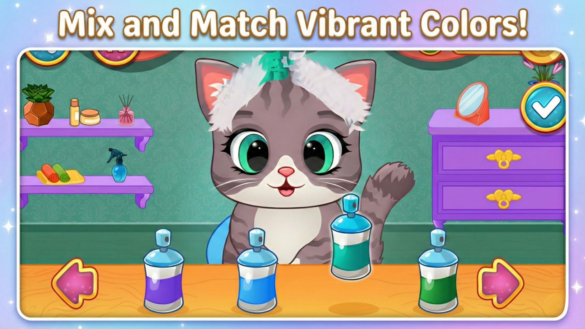 Para sobresalir en Peluquería de Animales, abraza la experimentación. Mezcla y combina diferentes estilos y colores para encontrar el look perfecto para cada cliente. Use el botón deshacer si desea probar un enfoque diferente sin ninguna presión. Presta atención a las expresiones y reacciones de los animales; ellos pueden guiar tus elecciones de estilo. Además – no olvides personalizar: ¡un poco de brillo ayuda mucho!
