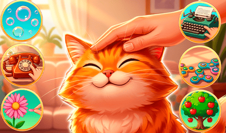 - 12+ Mini-Juegos: Acariciar gatos. Reventar burbujas. Limpiar suciedad. Cada uno es táctil.