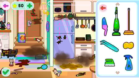 Controla tu avatar usando el ratón o la pantalla táctil. Haz clic y arrastra para las tareas de limpieza e interactúa con varios objetos tocándolos o haciendo clic en ellos. Personaliza tu avatar seleccionando elementos del guardarropa usando menús fáciles de navegar.