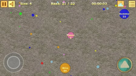 El objetivo principal de Balls: Evolution es hacer crecer tu bola recolectando círculos de comida y absorbiendo bolas más pequeñas mientras evitas las más grandes.