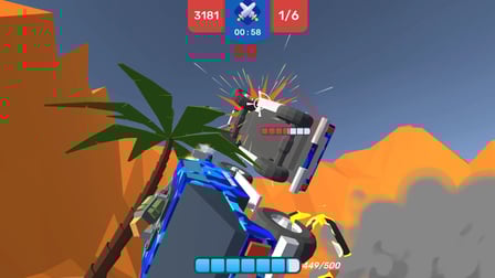 Battle of Cars es un emocionante juego de combate de autos en el que puedes participar en batallas dinámicas por la supervivencia. Selecciona tu vehículo, mejóralo con poderosas armas y sumérgete en emocionantes escenarios de acción para aniquilar a tus oponentes. Este juego basado en navegador no requiere registro ni descargas; juegue directamente desde su computadora de escritorio, dispositivo Android o iOS. Sumérgete en la atmósfera de alto octanaje de accidentes automovilísticos, destrucción y mejoras estratégicas. El luchador más fuerte, rápido y seguro gana la batalla, ganando recompensas por destruir más enemigos y causar el mayor daño. Con nuevos coches y armas para comprar y mejorar, siempre tendrás nuevas formas de dominar las arenas llenas de acción.