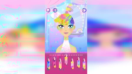 Comenzando con Salón de Belleza ¡es simple! Elija entre el salón de peluquería o manicura para comenzar. Siga las indicaciones en pantalla para seleccionar herramientas y productos. Para peinar el cabello, comience lavándolo, luego use el secador y otras herramientas para peinarlo. Puede recortar, alisar o rizar el cabello antes de aplicar el color. En el salón de manicura, comience con el cuidado de las manos, luego proceda a aplicar esmalte de uñas, texturas y accesorios. Complete cada tarea para ver la reacción de su cliente y tome una foto de su obra maestra.