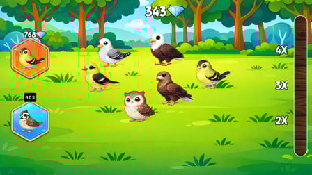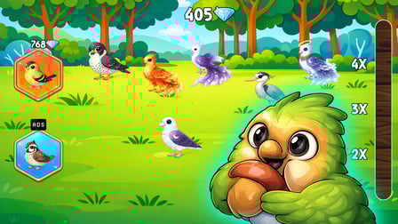 Las aves se controlan fácilmente con un clic o un toque. Arrastra dos o más aves idénticas hacia un mismo espacio para que se fusionen en una nueva especie. Observa las animaciones encantadoras mientras se forma tu nueva ave y aprende a navegar en el juego con total facilidad.