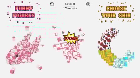 Break Figure ASMR Puzzle presenta más de 30 niveles de rompecabezas relajantes en los que puedes hacer desaparecer varias figuras haciendo clic en los cubos. Con una selección de música ASMR y sonidos de la naturaleza, puede desarrollar su cerebro y relajarse simultáneamente. El juego también ofrece 10 figuras divertidas como piñata, conejo y matryoshka, junto con diferentes máscaras para personalizar tu experiencia de juego.