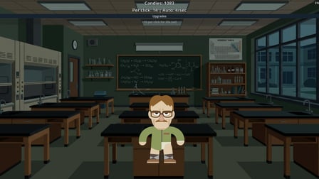 Los controles son sencillos: haz clic o toca a tu profesor para ganar dulces. Las mejoras se pueden comprar directamente desde la interfaz utilizando dulces ganados, lo que permite una experiencia de juego sin interrupciones.