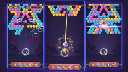 Maximiza tu puntuación apuntando a grupos de burbujas del mismo color. Usa las paredes para hacer rebotar burbujas en lugares de difícil acceso. Esté atento a las burbujas especiales que pueden despejar grandes secciones del tablero. Elabora estrategias para tus movimientos para crear reacciones en cadena para obtener grandes puntos y completar niveles más rápido.