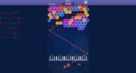 ¡Puedes disfrutar de Bubble Shoot Piano gratis en Playgama! Sumérgete en nuestra selección de juegos en línea gratuitos y atractivos, incluyendo este shooter de burbujas musical.