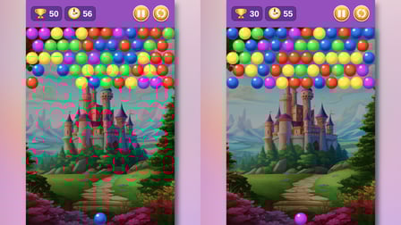 En el escritorio, usa el mouse para apuntar y haz clic para disparar. En el móvil, desliza el dedo para apuntar y toca para disparar. ¡Cada disparo exitoso que conduzca a una caída te recompensa con puntos, mientras que cada disparo fallido acerca las burbujas al fondo!