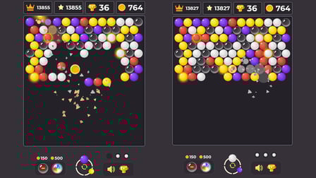 ¡Jugar Bubble Shooter: Standart es sencillo! En un ordenador, utilice el ratón para apuntar y haga clic para disparar. En un teléfono, toque la pantalla donde desea disparar la burbuja. Combina tres o más del mismo color para reventarlas y ten cuidado con las burbujas que avanzan y se acercan a tu tirador. ¡Mantén la concentración y disfruta de algunos colores vibrantes mientras acumulas puntos!