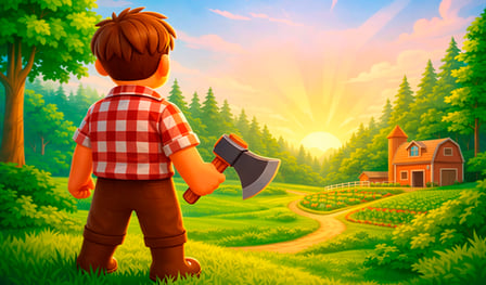 Desbloquea nuevas zonas. Construye un Taller de Herrería para fabricar herramientas avanzadas. Compra una Granja. Cosecha cultivos para obtener recursos extra. El ciclo nunca se detiene. Corta árboles. Rompe piedras. Vende troncos. Mejora el equipo. Se desbloquean mapas más grandes. Aparece nuevo equipo. Consejo profesional: Enfócate primero en los vehículos. La recolección manual es lenta. Los camiones limpian bosques en segundos.