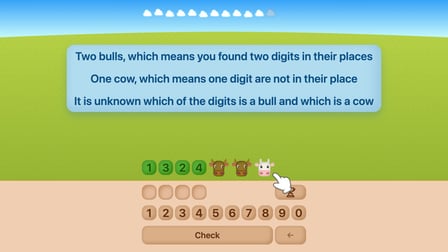 Toros y vacas: Adivina el número es un emocionante juego de rompecabezas en el que puedes involucrar tu mente en un emocionante desafío de adivinar números. Juega en línea gratis sin descargar y sumérgete en la atmósfera de lógica y deducción. Este clásico juego de rompecabezas está diseñado para desarrollar la atención, el pensamiento lógico y las habilidades matemáticas. Con una experiencia de juego infinita, puedes poner a prueba tu destreza y competir en la clasificación con amigos y jugadores de todo el mundo. Se puede acceder al juego en múltiples plataformas, incluidas computadoras de escritorio, Android e iOS, lo que facilita su reproducción en teléfonos y computadoras. Ya sea que esté de humor para un ejercicio mental rápido o una sesión de juego prolongada, Bulls and Cows ofrece una experiencia adictiva e interactiva que lo mantendrá regresando por más.