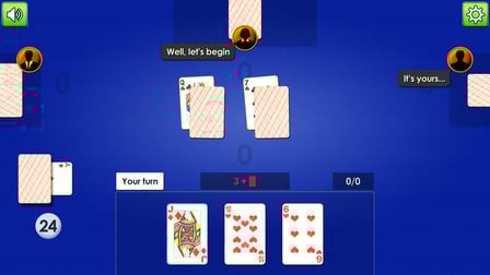 Para jugar Bura / 31 en línea, comienza reuniendo a tus amigos o uniéndote a una mesa con jugadores de todo el mundo. A cada jugador se le reparten tres cartas, y el objetivo es acercarse lo más posible a los 31 puntos. Los jugadores se turnan para robar cartas del mazo o del montón de descartes, buscando crear combinaciones poderosas de palos. Recuerda, un ‘Bura’ (tres cartas triunfantes) garantiza una victoria instantánea. Juega estratégicamente y trata de leer las intenciones de tus oponentes mientras decides cuándo revelar tus puntos. La ronda termina cuando alguien declara confiadamente su puntuación o se agotan las cartas. ¿Quién será el ganador?