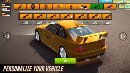 - Personaliza Tu Coche: Personalice su vehículo no solo por su apariencia sino también por su rendimiento. Elija los neumáticos y el ajuste adecuados para un mejor control.