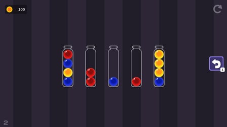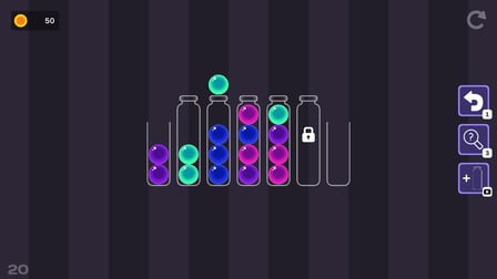 - Clasifique las bolas hasta que todos los colores estén agrupados en las botellas correctas.