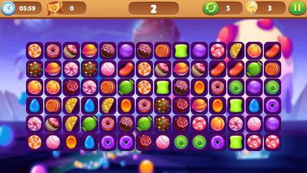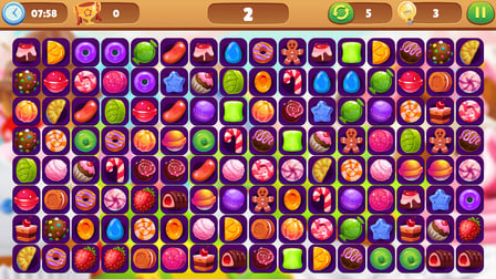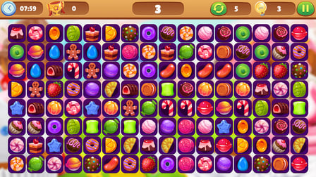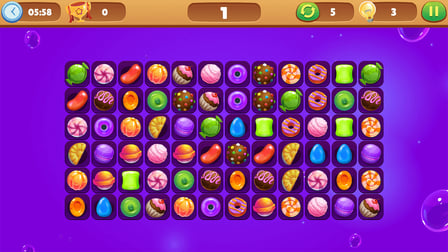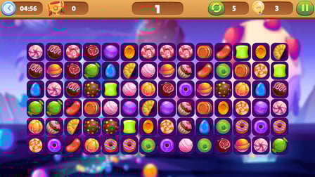 Comenzar con Candy Connect es simple. Elige tu nivel de dificultad (Fácil, Medio o Difícil) y comienza a unir pares de fichas de caramelo tocándolas. Si te quedas atascado, puedes usar el botón de pista como pista o mezclar las fichas para mezclar las cosas. El objetivo es despejar el tablero antes de que se agote el tiempo.