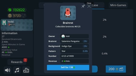 Adéntrate en el vibrante mundo de Catch All Brainrot Cases NFT, un juego emocionante donde recolectar e intercambiar NFTs es la estrella. Este innovador título fusiona juegos en línea con la emoción de los coleccionables virtuales. A medida que avanzas, desbloquearás artículos únicos usando tu moneda base, mejorando así tu experiencia de juego. ¡Sumérgete en un reino lleno de infinita posibilidad, donde puedes exhibir tus preciados NFTs en tu perfil o incluso venderlos para obtener ganancias!