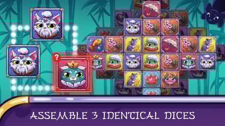 El objetivo principal es despejar el campo de juego haciendo coincidir fichas con la misma imagen en grupos de tres.