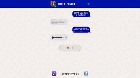 ¡Jugar a Chat with Mom's Female Friend es sencillo! En tu ordenador, usa el ratón para hacer clic en las opciones de respuesta durante las conversaciones. Si estás en tu teléfono, toca la pantalla para seleccionar respuestas. Cada elección impacta el resultado de tu interacción, ¡así que elige sabiamente!