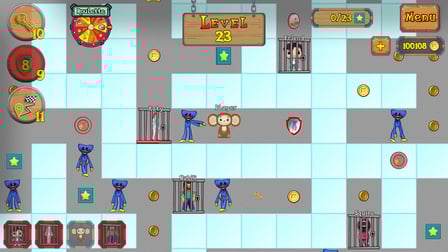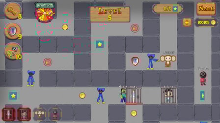 Cheburashka y Huggy Wuggy en el laberinto es un emocionante juego de rompecabezas basado en navegador en el que puedes rescatar amigos y recolectar estrellas mientras navegas por un complejo laberinto. Juega en línea gratis sin descargar y sumérgete en la emoción de escapar de la jaula de Huggy Wuggy y recoger recompensas. Elabora estrategias con otros jugadores para encontrar el mejor camino y disfruta de una aventura interminable llena de misterio y emoción. Ya sea que esté en un dispositivo de escritorio, Android o iOS, este juego ofrece una experiencia de juego de alta calidad para niños, adolescentes y adultos por igual. Participe en una competencia amistosa y trabaje en equipo mientras navega por el laberinto, recolecta monedas y apunta a desbloquear al personaje secreto, Kissy Missy. El juego ofrece una combinación perfecta de entrenamiento cerebral y pensamiento estratégico, lo que lo hace adecuado para fiestas y múltiples jugadores.