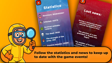 El corazón de Clicker - Epidemie reside en la planificación estratégica y decisiones rápidas. Con más de 120 mejoras únicas y múltiples modos de juego, los jugadores navegan por un mundo al borde de la destrucción. Las noticias dinámicas en el juego mantienen a los jugadores informados y comprometidos, obligándolos a adaptar sus estrategias constantemente.