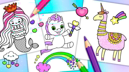 Puedes colorear una variedad de criaturas mágicas y lindas, incluidas hadas, sirenas, unicornios, gatos y perros.