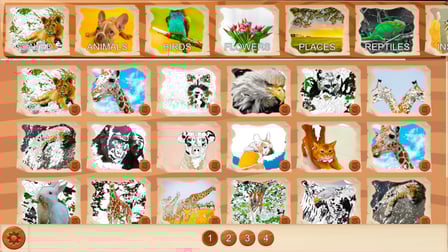El juego ofrece una amplia gama de categorías que incluyen animales, paisajes, diseños abstractos y más, atendiendo a diversos intereses.
