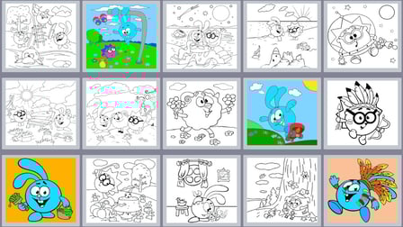 Libro para colorear Funny Smeshariki es adecuado para niños y adolescentes, ya que ofrece un ambiente familiar que fomenta la creatividad.
