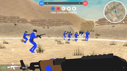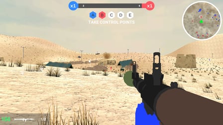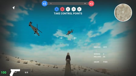 Command Battle es un emocionante juego de acción en el que puedes participar en dinámicas batallas en equipo. Juega en línea gratis sin descargar y sumérgete en la emocionante atmósfera de la guerra estratégica. Únete al equipo rojo o azul y lucha por el control de los puntos clave del mapa. La característica única del juego es la intensa competencia por capturar y mantener posiciones estratégicas, lo que hace que cada partido sea una prueba de destreza táctica y trabajo en equipo. Tanto si eres un jugador incondicional como si buscas una descarga rápida de adrenalina, Command Battle ofrece una experiencia convincente que te hará volver por más. Con una variedad de armas y vehículos, desde automóviles hasta helicópteros, el juego ofrece infinitas oportunidades para maniobrar y ejecutar planes tácticos complejos. Explora dos mapas expansivos, cada uno con un terreno distinto, que agregan profundidad y rejugabilidad a tus batallas. ¡Demuestra tu superioridad en el campo de batalla y captura todos los puntos de control para asegurar la victoria!