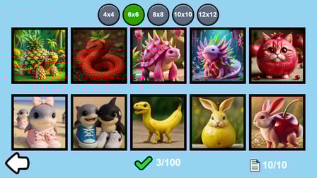 Para jugar a Complete a Brainrot - Puzzles!, selecciona un rompecabezas de la galería y elige el nivel de dificultad que prefieras. A medida que arrastras y sueltas las piezas, intenta ensamblarlas para formar la imagen completa. Usa pinch to zoom para acercarte y ver cómo encajan las piezas en tu dispositivo móvil. Cuanto más rápido completes el rompecabezas, más puntos ganarás. ¡Diviértete jugando en tu móvil o en tu ordenador!