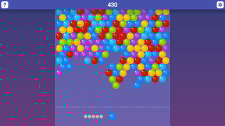 - Partido: Alinea tres o más burbujas del mismo color para reventarlas.