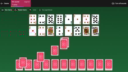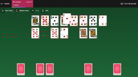El solitario, también conocido como Paciencia, tiene una rica historia que se remonta a finales del siglo XVIII en el norte de Europa. Se hizo muy popular en Francia y se extendió por todo el mundo. Las versiones digitales de Solitario, especialmente la versión de Microsoft incluida en su sistema operativo Windows, llevaron el juego a millones de personas en todo el mundo. Desire Solitaire sigue estas raíces tradicionales al tiempo que ofrece un giro único al permitir que las cartas se muevan a la base en orden ascendente, independientemente del palo.