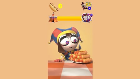 Circo digital 'Pomni' Eats es un emocionante juego casual en el que puedes sumergirte en el encantador mundo de un circo único. Aquí, juegas como Pomni y te embarcas en una deliciosa búsqueda para comer tantas salchichas de hot dog como sea posible. Cuantas más salchichas comas, más amigos podrás ahorrar. Experimente esta cautivadora historia en línea de forma gratuita sin necesidad de descargarla y disfrute de la diversión infinita en un entorno basado en navegador diseñado para niños y adolescentes por igual. Sumérgete en la atmósfera mágica del circo, que ofrece desafíos interminables y entretenimiento delicioso en todas las plataformas, incluidas computadoras de escritorio, Android e iOS.