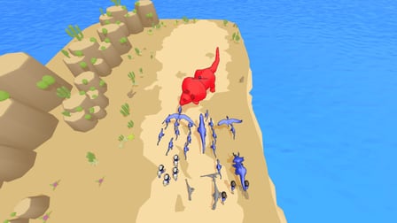 Dino: Merge and Fight es un emocionante juego arcade lleno de acción en el que puedes cumplir tu sueño de conquistar el mundo. Reúne tu propio ejército y une guerreros con poderosos dinosaurios para crear una fuerza poderosa. Juega en línea gratis sin descargar y sumérgete en la emocionante atmósfera de estrategia y aventura. El juego presenta gráficos en 3D de alta calidad y ofrece una experiencia adictiva para los fanáticos del juego incremental. Ya sea que esté en su computadora de escritorio o en su dispositivo móvil, Dino: Merge and Fight ofrece diversión infinita para adolescentes y adultos por igual. Sumérgete en el mundo de los dinosaurios y embárcate en una búsqueda para capturar fortificaciones enemigas. ¡Experimenta la emoción de llevar a tu ejército a la victoria y conviértete en el máximo conquistador!