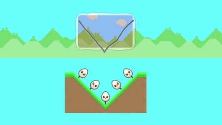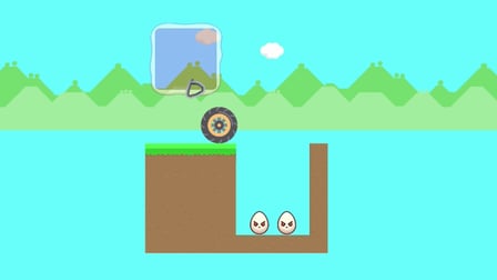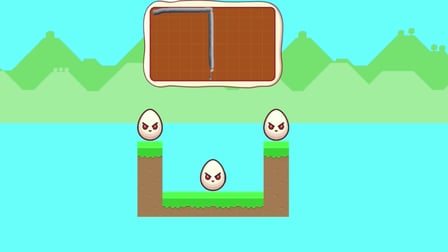 El objetivo es dibujar formas que caigan y aplasten todos los huevos malos evitando los buenos.