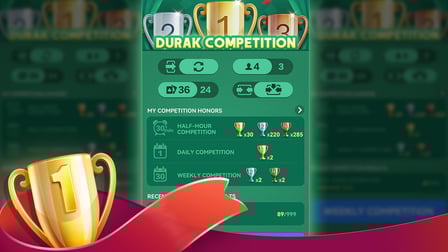 Durak Competition ofrece torneos de media hora, diarios y semanales, cada uno diseñado para poner a prueba tus habilidades y estrategia.